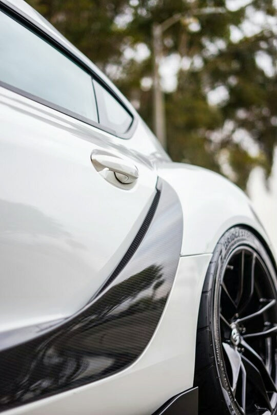 High Quality Premium Genuine Carbon Fibre Rear Fender TRIM Inserts Which Directly Add-On to your MK5 Supra, these products simply bolt onto your original body panels.