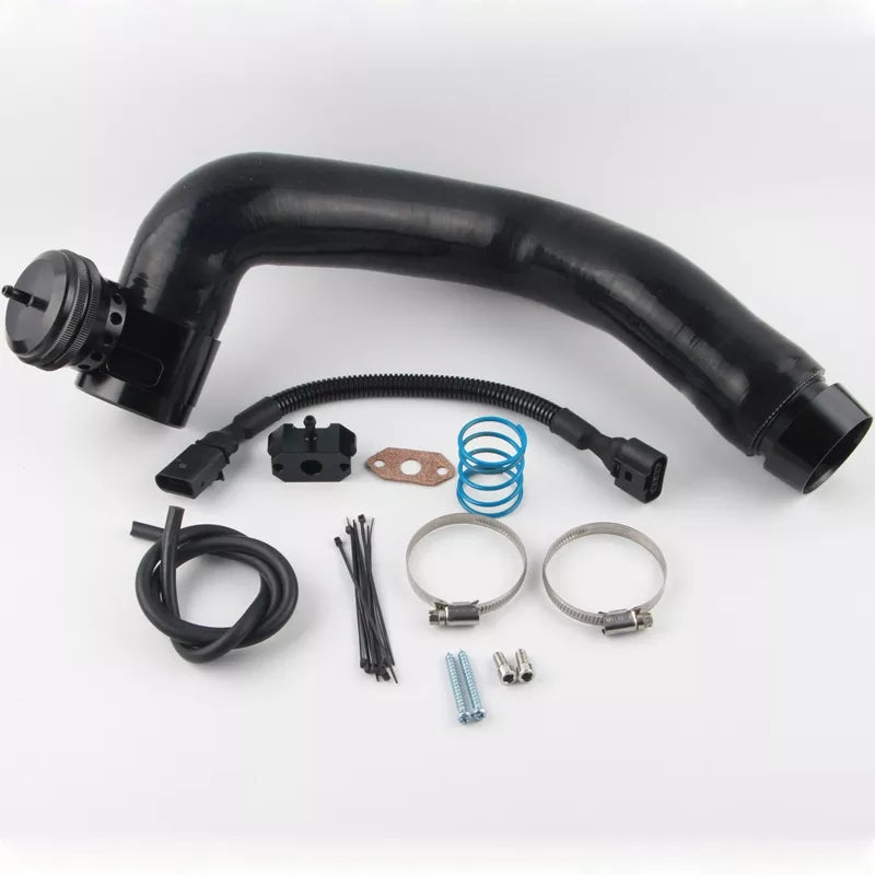 This kit totally replaces the plastic pipe from turbo to manifold with a silicon hose (available in a choice of colours), and everything else you need to install the valve is included in the kit together with full instructions.